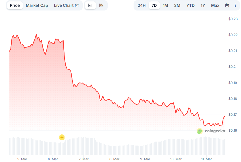 Изменение цены DOGE за 7 дней. Данные CoinGecko