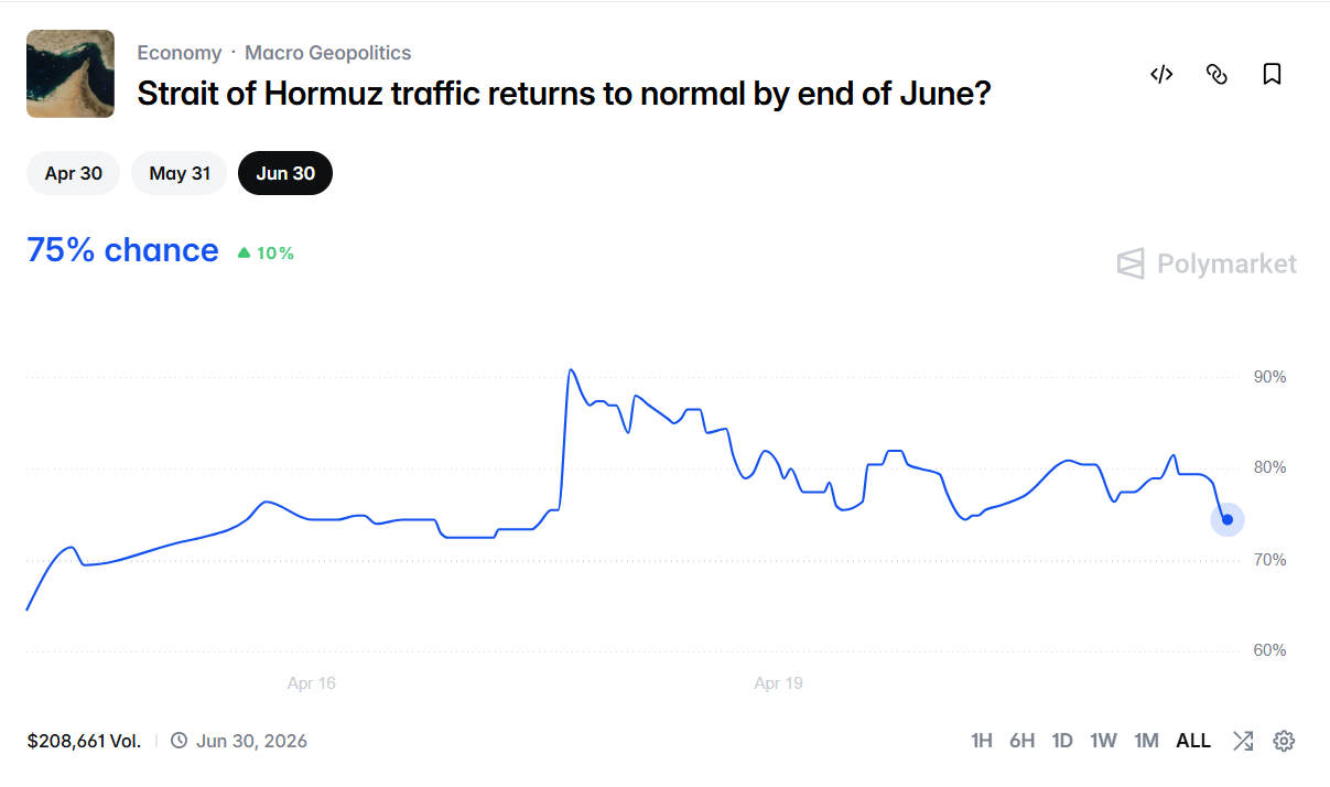 Рынки прогнозов: кризис в Ормузском проливе ещё далёк от завершения • Happy Coin News